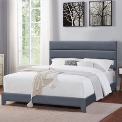 Cama de plataforma estofada em tecido de linho cinza escuro em tamanho duplo