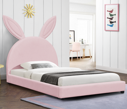 Cama de plataforma estofada personalizada, adorável coelho placa de cabeça na cinza