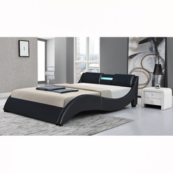 Cama de couro em forma de curva, venda quente da fábrica, cama de couro com luz led